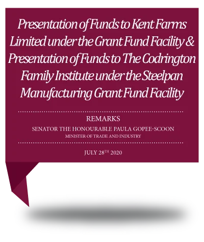 Presentation of Funds to Kent Farms Limited under the Grant Fund Facility & The Presentation of Funds to The Codrington Family Institute under the Steelpan Manufacturing Grant Fund Facility